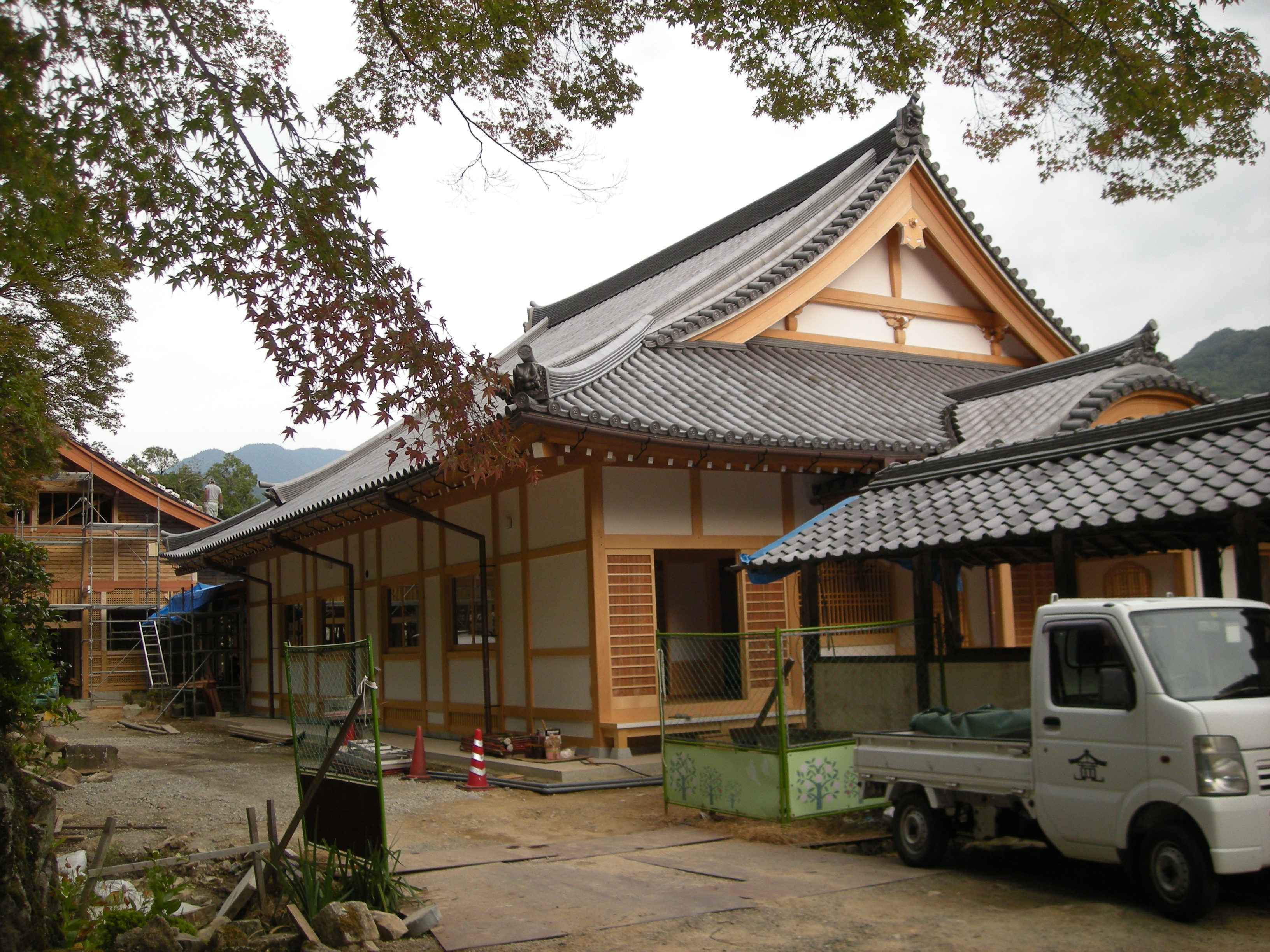 職人の技術の結晶のような素晴らしい含空院方丈が完成致しました。引き続き常住の工事へと移っておられます。尚、本山方丈の屋根も葺き替えを終えられ、紅葉の時期を前にしてこちらも素晴らしい景観です。これから絶好の行楽シーズンに入ります。紅葉を愛でながら、是非とも新しくなった含空院、本山方丈の屋根をお参り旁ご覧にお越し下さい。