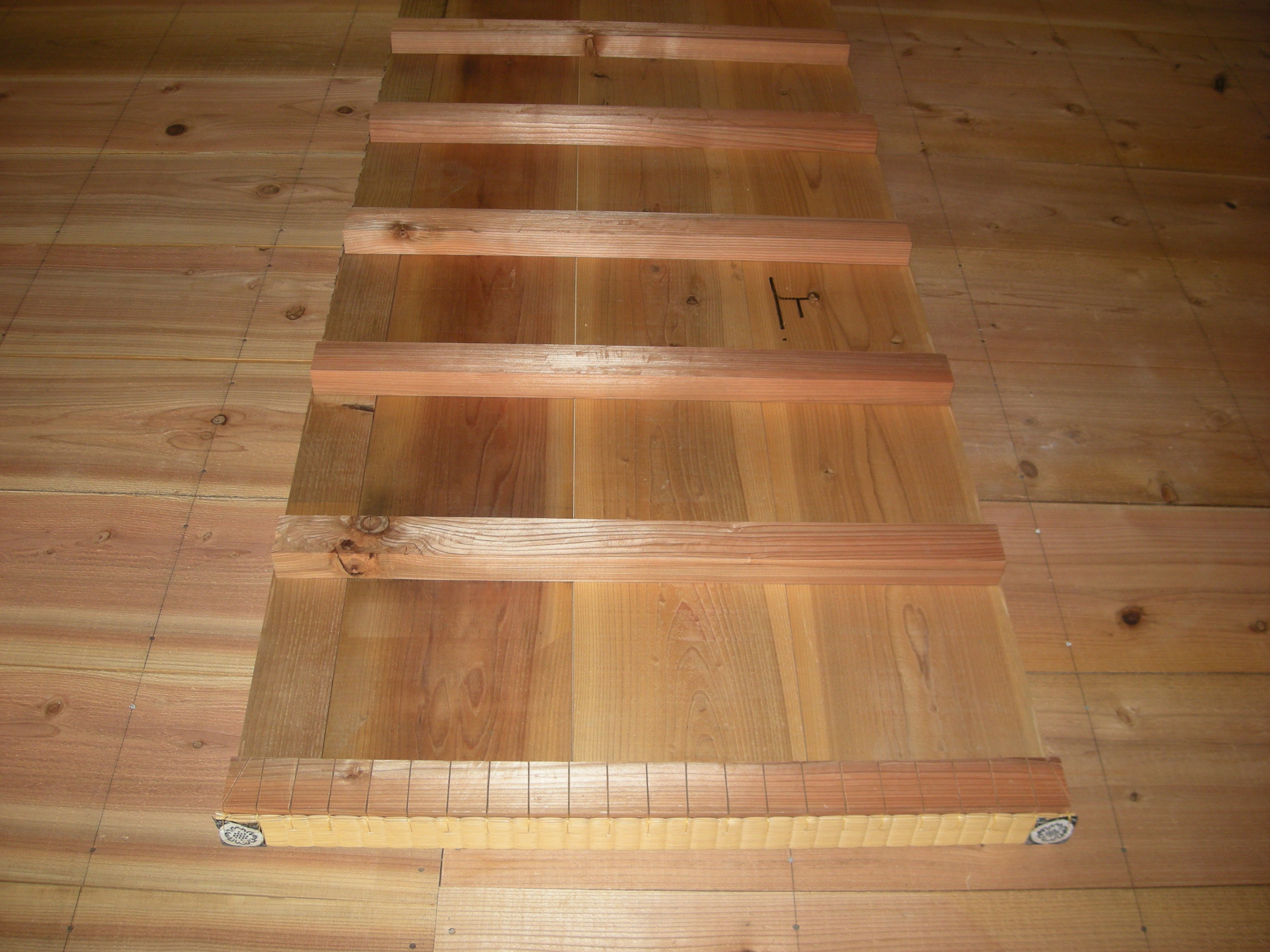 通常の畳床では無く、板床に畳表を縫い止めます。全て手縫いによる作業となるこの床の間仕上げを本床といい、これが本式の床の間であります。