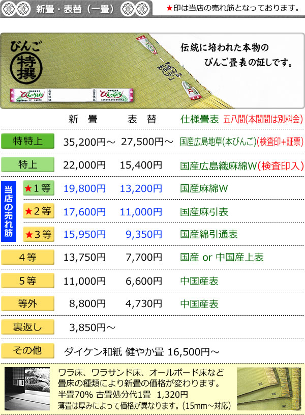 トップページ畳へのこだわり工事事業案内価格一覧店舗案内最新情報